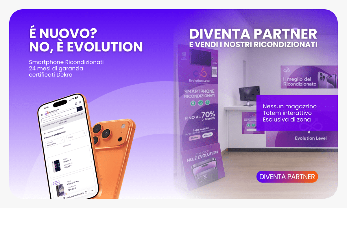 Evolution Level® e Recommerce® ti offrono una vasta gamma di prodotti ricondizionati, andando oltre i soliti best seller e soddisfando tutte le tue esigenze.